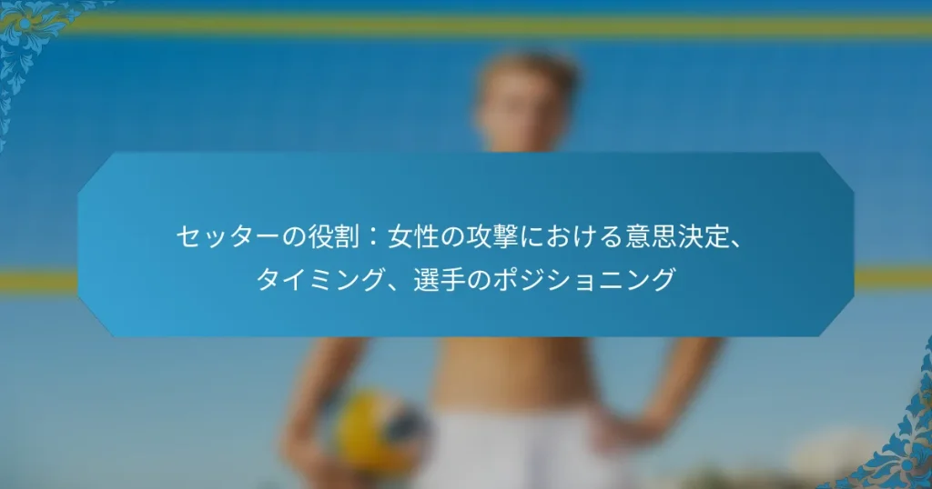 女子バレーボールでは、攻撃プレイを最適化し、さまざまなゲーム状況に適応するために、さまざまなタイプのセットが使用されます。主なタイプには、ハイボールセット、クイックセット、バックロウセットがあり、それぞれ異なる目的を持ち、特定のテクニックが必要です。