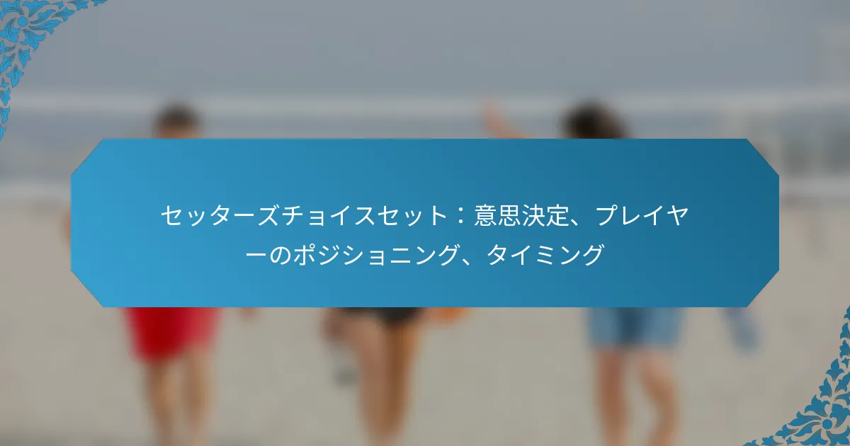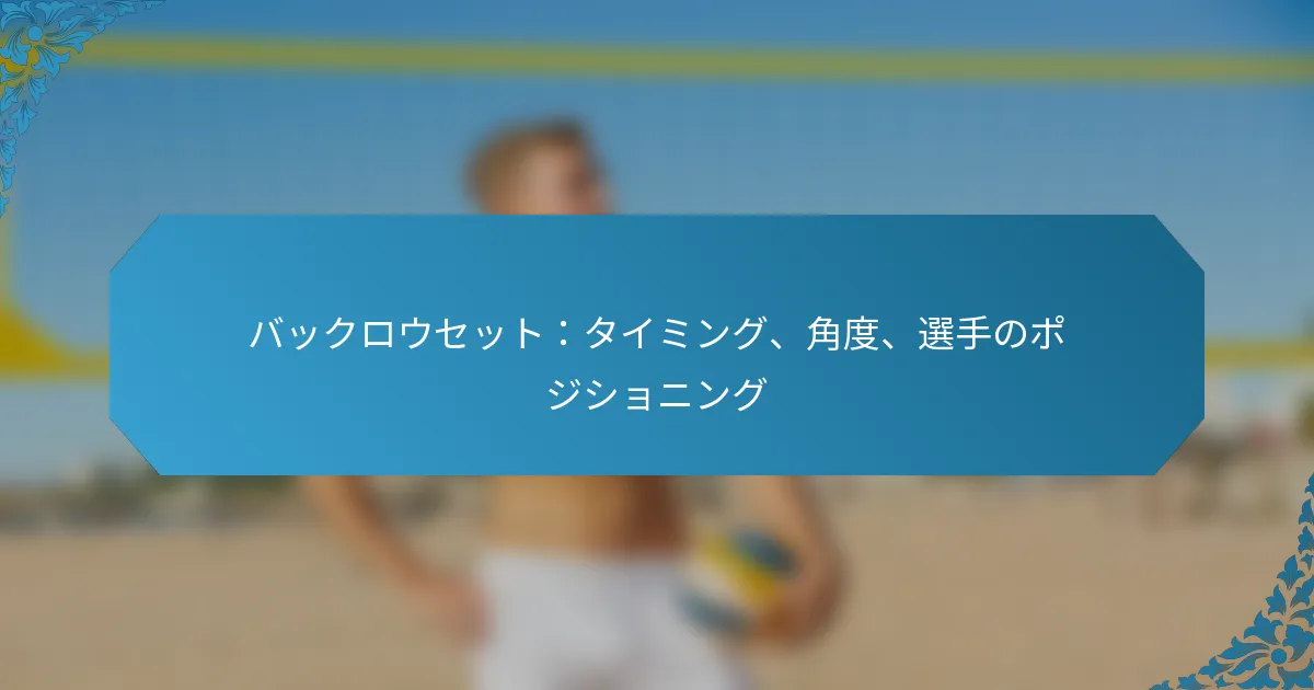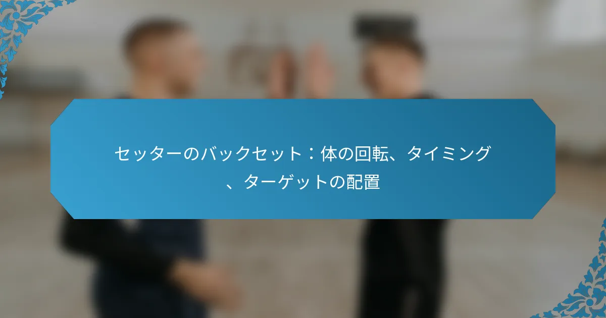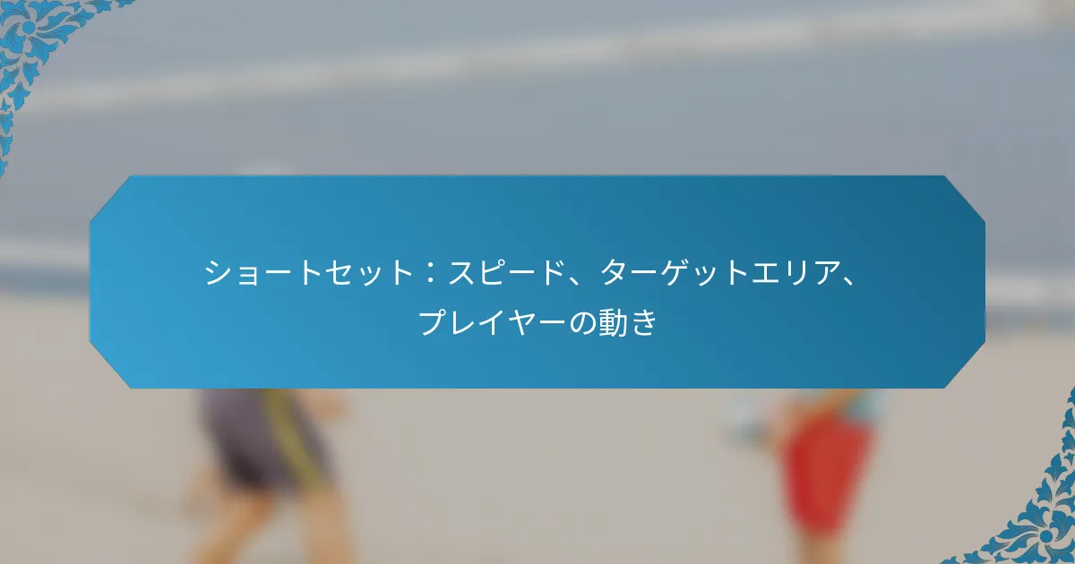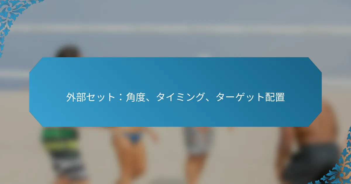 アウトサイドセットは、バレーボールのようなスポーツにおいて重要な技術であり、コートの外側から効果的な攻撃を行うためにボールを位置づけることを目的としています。角度、タイミング、ターゲットの配置に焦点を当てることで、選手は守備の隙間を突き、成功するプレーを実行するチャンスを最大化できます。 スポーツにおけるアウトサイドセットとは? アウトサイドセットは、さまざまなスポーツ、特にバレーボールで使用される戦略的な技術で、コートの外側から攻撃するためにボールを位置づけることを目的としています。このアプローチにより、選手は最適な角度とタイミングでボールを配球することで、守備の隙間を突くことができます。 アウトサイドセット技術の定義と概要 アウトサイドセット技術は、サイドライン近くに位置するヒッターにボールを配球することを含み、通常は効果的な攻撃が可能な高さで行われます。この技術は攻撃の機会を創出するために重要であり、相手チームの守備構造を崩すことができます。アウトサイドセットは、精度とタイミングを重視することが特徴であり、ヒッターがボールに強力なプレーを行えるようにします。 実際には、アウトサイドセットはセッターとヒッターの間の調整が必要です。セッターはヒッターの位置を把握し、成功する攻撃のチャンスを最大化するためにセットを調整しなければなりません。この技術は、得点が重要な高圧の状況でよく使用されます。 アウトサイドセットの主要な要素 角度:セットの角度はボールの軌道とヒッターの効果的な攻撃能力に影響を与えます。 タイミング:セッターとヒッターの間の適切なタイミングは、成功するアウトサイドセットを実行するために不可欠です。 ターゲットの配置:ボールの配置はヒッターの好むヒッティングゾーンを狙うべきであり、最適な攻撃の実行を可能にします。 これらの要素は、統一された攻撃戦略を作り出すために協力します。適切に実行されたアウトサイドセットは、守備に挑戦し、得点の機会を創出する強力な攻撃につながります。 アウトサイドセットの一般的な応用 アウトサイドセットは、速攻や守備がポジションを外しているときなど、さまざまなゲームシナリオで一般的に使用されます。特に、相手チームがミドル攻撃を予測しているときに効果的であり、守備を驚かせることができます。コーチは、チームのダイナミクスと攻撃戦略を強化するために、練習中にアウトサイドセットを強調することがよくあります。 バレーボールに加えて、アウトサイドセットの原則は、バスケットボールなどの他のスポーツにも適用でき、ポジショニングとタイミングが成功するプレーにとって同様に重要です。アウトサイドセットを理解することで、チーム全体のパフォーマンスと得点効率を向上させることができます。 角度、タイミング、ターゲットの配置の重要性 アウトサイドセットの角度は重要であり、ボールの飛行とヒッターの効果的な攻撃能力を決定します。適切な角度のセットは、強力なスパイクや戦略的な配置の機会を生み出すことができます。タイミングも同様に重要であり、セッターはヒッターのアプローチに合わせてボールを適切なタイミングでリリースしなければなりません。 ターゲットの配置戦略は、ヒッターが守備の弱点を突くことができるコート上の特定のゾーンを狙うことを含みます。守備のポジショニングを理解することで、選手はセットを調整し、得点のチャンスを最大化できます。一般的なミスには、角度の調整が不十分だったり、タイミングが合わなかったりすることがあり、これが機会を逃す原因となります。 アウトサイドセットを実行するための専門的なヒントには、セッターとヒッター間のコミュニケーションを練習すること、一貫したボールの配置に焦点を当てること、相手チームの守備パターンを研究することが含まれます。これらの戦略は、アウトサイドセットの効果を高め、チーム全体のパフォーマンスを向上させることができます。 アウトサイドセットの効果に角度はどのように影響するか? アウトサイドセットの角度は、その効果に大きく影響し、ターゲットの軌道と配置を決定します。適切に選ばれた角度は精度を高め、成功する結果の可能性を増加させますが、不適切な角度は誤解を招き、効果的なプレーを妨げることがあります。 シナリオごとの最適な角度 最適な角度は、特定のシナリオや設定されるターゲットの種類によって異なります。たとえば、外側のヒッターにセットする場合、45度から60度の角度が最も効果的であり、クリーンなアプローチと最適なスイングパスを可能にします。 対照的に、ターゲットがバックローアタッカーの場合、約30度から45度の急な角度がより適切かもしれません。この調整により、ボールがネットを越えつつ、ヒッターがアクセスできるようになります。 外側のヒッターの場合:45-60度